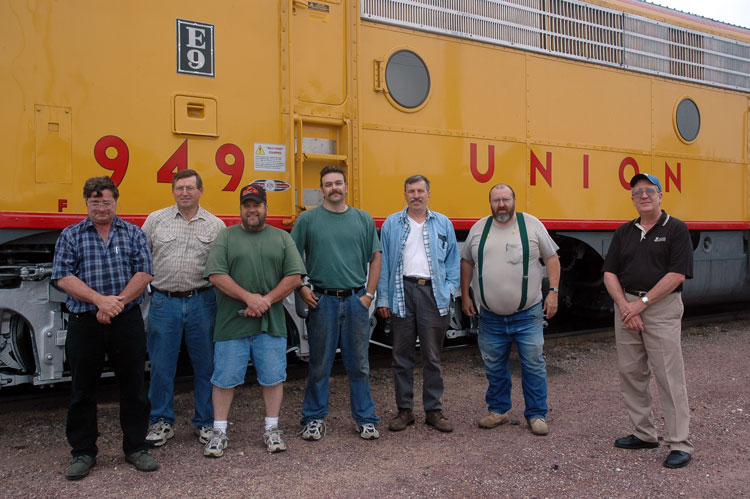 to R) Conductor Mike Popilek, Switchman Roger Edmonds, Conductors Rick Gramkowski & Terry Hopkins, Engineers Stan Backleda & Bob Richards, and Conductor Gordy Bowe.