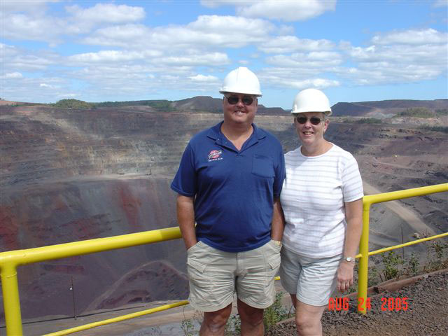 Ed & Chris Henry toured the Tilden Iron Ore Mine at Negaunee, Michigan on 8/24/05. It's a tour Ed found hard to believe they do because you are taken right through the plant, & shown everything while the machinery is running, subjecting you to dust, dirt, noise & extreme heat from the massive grinders & the furnace; all which makes you feel relieved to get back outside. Looks like Ed & Chris came through it okay! |