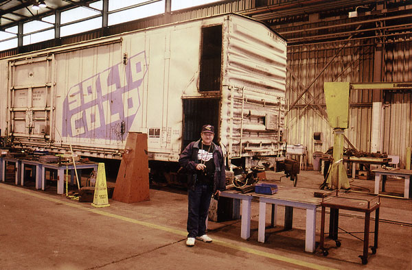 Illinois Division engineer Rex Hauser checking out the Clinton Car Shops in 1998. Photo by Mark Llanuza. |