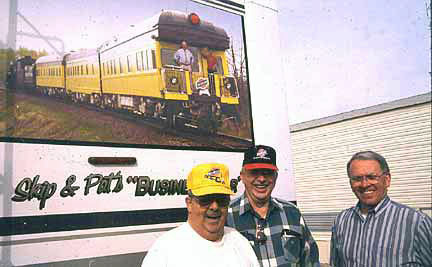 Left to right are: Skip Pierce, retired Wisconsin Division conductor and former trainmaster, Pat Perrier, retired Twin Cities conductor and former trainmaster & Bob Brownell, retired DM&E president and former CNW officer at Tucson, AZ in February 2005. The mural is on the back of Skip and his wife Pat's mobile home, (Skip and Pat's Business Car). Photo is from Chris Burger. |