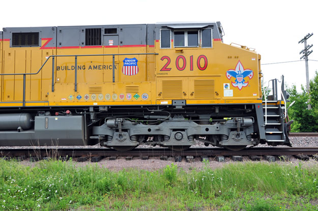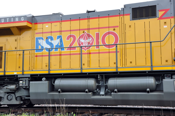 For 100 years, the Boy Scouts of America has created a strong foundation of leadership, service, and community for millions of America's youth.  Their year of celebration runs from September 1, 2009 through December 31, 2010 providing an opportunity to demonstrate the tremendous impact of a century of living the Boy Scout Law.  Part of this celebration took place at Rochelle coincident with Rochelle Railroad Days on Friday, Saturday & Sunday, June 4th, 5th & 6th.  Three Heritage Units were on hand - set up just east of the Rochelle Railroad Park near the depot.  Mark Llanuza was there and sent us these photos of the equipment and the C&NW men who participated.  Thanks Mark!