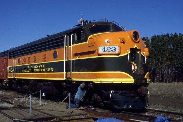 The Wisconsin & Great Northern also owns former Chicago & North Western F-7A 4076A; then C&NW 423 and finally New Jersey Transit 423. This unit was rebuilt by Wisconsin Great Northern during 2001 and is now fully operational. Photo courtesy of Charlie Kuehn. |