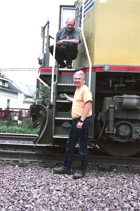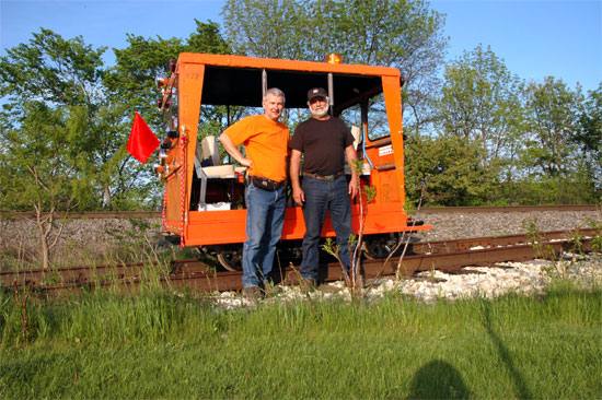 Dave Hawley & Butler Signal Maintainer Russ Melichar standing next to Dave’s Fairmont motorcar at East Troy, Wisconsin on 05/22/05. |