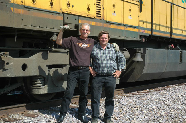 Here’s Tom and Mike on the C&NW 8646, ready to leave Smith Road. |
