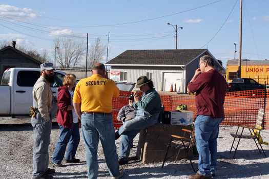 Here is a gathering at Boone Yard in April 2011. From left to right: unknown, then Engineer Janet Schultz, who hired out with C&NW as a brakeman and now