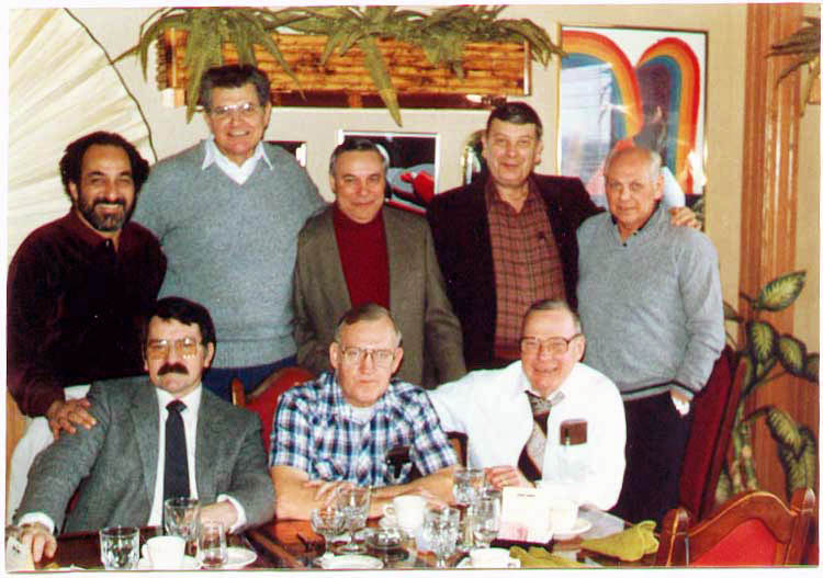 At a 1982 BLE party, we have Oscar Berg, Jr, Warren Moss, Bill Enault & Joe Barker. Behind Oscar & Warren are Bob Happ, Wallace Belt & Danny Eberhart. |